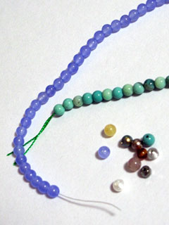 ・左側からうすい青に見えるのはカルセドニー(染め)のラベンダー